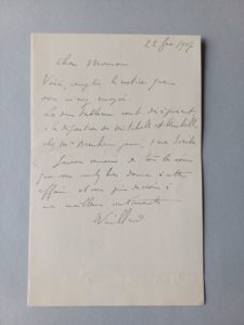 Édouard VUILLARD (1868-1940). Lettre autographe signée, adressée à un « Cher Monsieur ». S.l., 22 fev[rier] 1907. ½ page in-12 (pli en 2). Le peintre signale en particulier que « les deux tableaux sont dès à présent à l'exposition de...