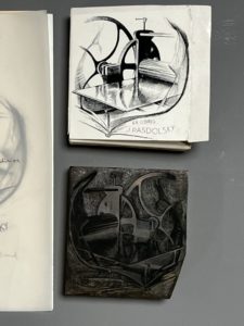 [Ex-libris]. BERTRAND (Jean-Marcel, né en 1948), grav. Matrice originale gravée sur bois, d'un ex-libris composé pour le bibliophile J. Rasdolsky. 1988. Bois de 8 x 9 x 2 cm., dans un étui (déchiré) portant un tirage de la vignette ;...