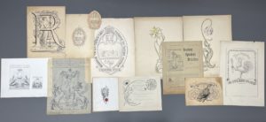 particulièrement distingué comme dessinateur d'ex-libris ; cet album montre d'autres aspects de son talent, notamment dans le domaine de la publicité. A la fin de l'album se trouve un très bel ensemble de projets pour des objets décoratifs, notamment des luminaires, dessinés en grand format et en couleurs. Dans un classeur à anneaux et sous pochettes.