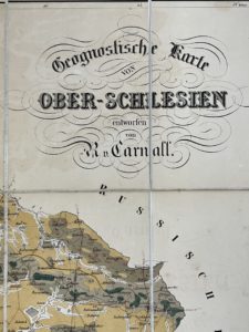[Carte géologique]. [Allemagne]. CARNALL (Rudolph von). Geognostische Karte von Ober-Schlesien.Berlin, Schropp, 1857. Une carte lithographiée en couleurs avec quelques rehauts, 77 x 62 cm., entoilée, pliée 21,5x 14 cm., sous couverture éditeur...