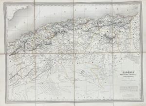 [Carte géographique]. [Algérie]. DUFOUR (A. H.). Ensemble de deux cartes dressées par ce géographe. Gravure sur acier, limites coloriées, entoilées, pliées. 1. Paris, Longuet ; Alger, Bastide, 1846. 54 x 79 cm. (qq. trous aux plis de la...