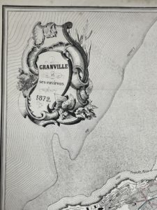 [Plan topographique]. [Granville]. GRANVILLE et ses environs. Granville, Beaufils [Impr. Cagnant], 1872. Plan lithographié, 3 routes et la rivière coloriés, 49 x 39,5 cm., entoilé, plié 31 x 21 cm. Plan rare dont nous n'avons localisé aucun...