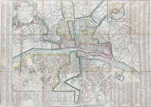 [Plan topographique]. [Paris]. JOURNEAUX, éd. Nouveau Plan routier de la ville et faubourgs de Paris, divisé en 48 sections. A Paris, chez Journeaux, 1800. Plan gravé sur cuivre, 53,5 x 76 cm., limites et fleuve coloriés, plié 19 x 12 cm., reste...
