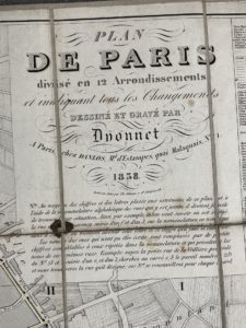 [Plan topographique]. [Paris]. DYONNET (Charles). Plan de Paris divisé en 12 arrondissements et indiquant tous les changements, dessiné et gravé par.... A Paris, chez Danlos, 1838. Un plan gravé sur acier, limites coloriées, env. 57 x 86 cm.,...