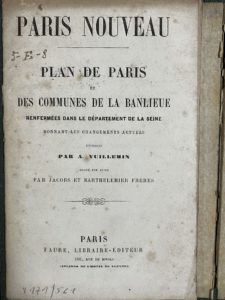 frères. Paris, Faure, 1862. Un plan gravé, colorié, env. 60 x 94 cm., entoilé et plié 19 x 13 cm., sous couverture éditeur percaline verte, titre et armes de Paris dorés (dos passé et en partie fendu). Plan très décoratif, accompagné d'une nomenclature (rousseurs) de 34 pages. Cachet (répété mais pas sur le plan) de la Bibl. de l'Univ. catholique de Lille.