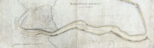 de l'océan jusqu'au port, et les bancs de sable qui en constituent les limites, et que l'on doit éviter à marée haute. Sous verre et cadre modernes. Mouillures claires, taches et frottements.