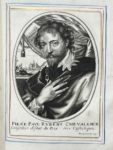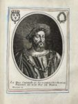 tranches dorées (rel. très usées, épid., frott., lacunes ; 2 pl. déchirées en marge, qq.. pl. déreliées ; qq. rousseurs et salissures sans gravité). Composé de 372 planches gravées sur cuivre, qui offrent presque toutes des portraits de femmes et hommes illustres de l'époque (hormis quelques figures allégoriques et une page de dédicace), en médaillon, avec en haut à gauche les armoiries du personnage représenté, le cas échéant. Chaque portrait est encadré de 3 filets peints or, bleu et rouge. On trouve en début de volume 26 portraits d'une facture homogène mais différente de ceux de Moncornet, dont certains sont signés par le graveur Jean Frosne (v. 1625 - après 1676). Soit un total de 398 planches.