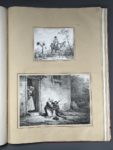 coins émoussés ; marques de colle aux coins de la plupart des planches). L'album se compose d'un feuillet de titre et de 66 feuillets chiffrés de 1 à 68 (les f. 50 et 51 ont été retirés). Le titre est titre manuscrit au crayon : « Lithographies d'Horace Vernet, fournies et disposées par Mme Delpech [certainement apparentée à l'imprimeur-lithographe François-Séraphin Delpech (1778-1825)] jusqu'à la pièce dite La Cuisine militaire les suivantes ont été ensuite rapportées au fur et à mesure ». Une autre note au crayon mentionne une date de janvier 1863. Il renferme 122 lithographies aux dimensions très variables entre 11 x 16 cm. et 35 x 48 cm., la plupart dans les tailles intermédiaires. Sont jointes 31 autres lithographies volantes d'après Vernet, certaines de grand format (une déchirée, rousseurs).