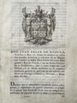 [RUJULA (Juan Felix de)]. Genealogia de la antigua familia y casa de San Simon, de la que justifica su descendencia el excelentísimo señor Don Claudio Ana, marqués de San Simon... Madrid, en la Imprenta de Sancha, 1804. In-folio, [3] f., 120...