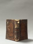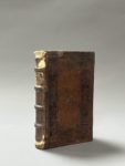eosdem libros compendium ac synopsis, à Cutheberto Tonstallo editum... Basileae, Per J. Oporinum, [1555]. In-8, 20-467 p., [18] f. (table), [sign. a10, a-z 8, Aa 8, B-H 8, I 4], veau brun souple époque, dos à 4 nerfs et muet, double filet à froid bordant les caissons, plats bordés d'une roulette offrant des bustes allégoriques, le centre orné de 5 fleurons dont 4 angulaires et un au centre, le tout à froid (défauts dont trav. de vers en tête et queue dos dos, et au coin d'un plat, plats craquelés et frottés ; page de titre défraîchie coupée en marges et remontée, mouill. claire aux tt premiers et tt derniers f., tache d'encre angul. des p. 27 à 77 et dans qq. marges). (USTC 612896 coll. erronée).