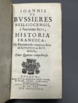 BUSSIÈRES (Jean de). Historia francica, ab Pharamundo continua serie ad Ludovicum XIV deducta, tomis quatuor comprehensa. Lugduni, sumpt. G. Barbier, J. Girin & F. Comba, 1671. 4 volumes in-12 étroit, velin ivoire époque, dos lisse, titre ms....