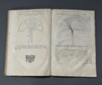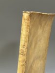 plate. A Paris, chez H. Droüart, 1624. In-folio, [9 (sur 10)] f., 80 p. [sign. [ ]2, ã2, ẽ2, ĩ2, õ1, A-C2, C-T2], fig., parchemin souple époque, dos lisse, titre à l'encre (2 coins émoussés, bord d'un plat découvert sur qq. cm., garde sup. manquante, un coin mq. en marge du dernier f., rares taches et rares rousseurs). Edition originale de cet ouvrage majeur de l'ingénieur Salomon de Caus (1576-1626). Elle est illustrée de nombreuses figures dans le texte, presque toutes gravées sur bois. A certaines de ces figures sont adjointes des pièces collées ou mobiles de type volvelle, au nombre de 10, placées au f. ã1 v°, et aux pages 15, 23, 29, 33, 39, 41, 44, 47, 70. Rapport de condition intérieure : Cet exemplaire collationné sur celui conservé à la BnF et un autre de la B.M. de Lyon numérisés, est conforme et complet. Comme lui il présente une gravure remplacée à l'époque par une autre collée à la page 72. Page 15, un morceau de ficelle sort du centre de la figure placée en haut de la page, on retrouve cette même ficelle sur l'exemplaire de Lyon, elle n'a pas été conservée dans notre exemplaire où la figure présente un petit trou central anciennement comblé. L'ex. BnF ne possède pas la pièce mobile page 39 bien présente dans notre exemplaire et dans celui de Lyon. L'on observe sur la figure de la page 28 des traces anciennes de colle et de frottement, l'on a sans doute collé ici par erreur la pièce mobile qui se trouve correctement placée sur la page en regard. Provenance : De La Reynie (sign. au bord d'un contreplat) ; deux signatures anciennes au titre, dont Fauconnet. (Houzeau & Lancaster I/2, 11432 ; Brunet I, 1691).