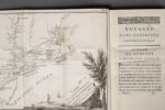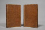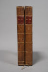 veau blond glacé vers 1800, dos lisse, pièce de titre maroquin rouge, tomaison et filets dorés, double filet doré bordant les plats, roulettes dorées aux coupes, tranches jaunes (accroc à une coiffe de tête, qq. ff. un peu brunis au t.2, sans le dernier f. blanc au t.1, répar. anc. en marge t.1 p. 155 et t.2 p. 23). Édition originale, en ce qu'elle fut la première complète et autorisée par l'auteur. Elle est illustrée de 2 cartes et 3 planches figurant un pont naturel pris de divers points de vue. Bel exemplaire, enrichi de 2 planches du XIXe s : un portrait de Washington gravé sur acier et une reproduction de la carte de la Nouvelle-France par Champlain. (Sabin 12227 ; Chadenat 3167).