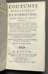 [Coutume. Normandie. 1742]. COUTUMES DU PAYS et duché de Normandie, anciens ressorts & enclaves d'icelui, augmentées des deux tiers... Avec des extraits sommaires des édits... Nouvelle & dernière édition. A Rouen, chez J.-B. Besongne, 1742....