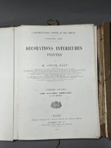 [Architecture]. DALY (César). L'architecture privée au XIXe siècle. Troisième série. Décorations intérieures peintes. Paris, Ducher, 1877. 2 volumes in-folio, en feuilles sous portefeuilles éditeur (coins usés et dos manquants aux...