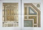 portefeuilles ; qq. rousseurs et petits défauts en marges ; mouillure claire en marges des 11 dernières pl. du tome 1 ; 6 premières pl. du vol. 2 usées et salies en marge). I. Premier volume. Salons, salles à manger, chambres à coucher et leurs dépendances. - II. Deuxième volume. Cabinets de travail, bibliothèque, accès et dépendances ; Salles de concert, magasins, détails divers et parallèles. Ensemble comprenant 110 planches en chromolithographie, ainsi que tous les feuillets intermédiaires requis (faux-titres et tables).