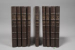 grand in-8, demi-chagrin poli brun à coins vers 1900, dos à 5 nerfs, auteur, titre et tomaison dorés, tête marbrée, non rogné (très lég. défauts à des coins). Bel exemplaire établi avec soin de cet important traité. Les 4 premiers volumes renferment le corpus, le 5ème contient les catalogues des familles décrites dans le corpus, réunis en un volume pour plus de commodité. Les 4 derniers volumes renferment les planches montées sur onglets, dessinées d'après nature par Jules Migneaux et Théophile Deyrolle. Elles sont au nombre de 303 dont 292 ont été coloriées à la main et gommées à l'époque.