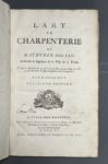 [Architecture]. JOUSSE (Mathurin). L'art de charpenterie... corrigé & augmenté de ce qu'il y a de plus curieux dans cet art & des machines les plus nécessaires à un charpentier par M. de La Hire. Troisième édition. A Paris, chez C.-A. Jombert,...