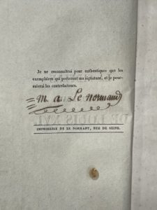 signature originale de l'autrice authentifiant l'édition. - Le petit homme rouge au château des Tuileries [Texte imprimé] : la vérité à Holy-Rood, prédictions, etc. Paris : Mlle Le Normand : Dondey-Dupré père et fils, 1831. [2] f., 106 p., [1] f., non coupé. Soit 2 volumes.