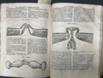 havane époque, dos à 5 nerfs, pièce de titre fauve, caissons ornés, restaurations malhabiles mais solides (épidermures aux plats, garde inf. manquate, 1 pl. usée renforvée avec tache claire, mouillure très claire, qq. petits défauts en marge ; frontispice en déficit, de même qu'un feuillet - blanc ou faux-titre - entre les 2 parties). L'illustration se compose de 2 planches gravées sur cuivre dont une dépliante, et de 28 figures gravées sur bois dans le texte. Première garde couverte de notes anciennes qui décrivent des remèdes pour les chevaux. (Menessier de La Lance II, p. 526). Provenance : Jean Ferdinand de Rigney (Franche-Comté, ex-libris manuscrit époque) ; Pierre Vuillequez, avocat en Parlement (ex-libris ms. XVIIIe s.).