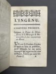 coiffe découverte, accident au titre courant dû à l'impression p. 117). Seconde édition, la première publiée à Paris (par Lacombe, sous l'adresse fictive de Lausanne). C'est également la première sous ce titre, l'originale parue à Genève la même année était intitulée L'Ingénu. (Bengesco I, 1471). Provenance : « Le Ch[evalie]r de Villelongue, 14 juillet 1783 » (mention ms. au titre).