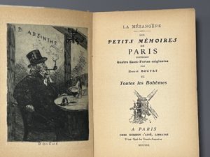 BOUTET. LA MÉSANGÈRE (Pierre de). Petits mémoires de Paris. Paris, Dorbon, [1908-1909]. 6 vol. in-18 brochés (qq. dos brunis). I. Les Coulisses de l'Amour. II. Rues et Intérieurs. III. Le Carnet d'un Suiveur. IV. Les Petits Métiers. V. Les...