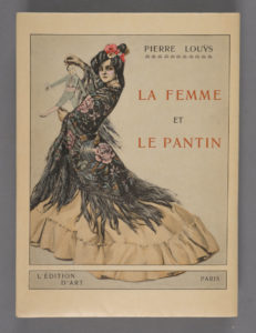 ROIG. LOUŸS (Pierre). La femme et le pantin. Illustrations de P. Roïg. Décorations de Riom. Paris, L'Edition d'Art H. Piazza,1903. In-8, broché, chemise éditeur (débroché, chemise usée). Ouvrage illustré de 50 compositions en couleurs dans...