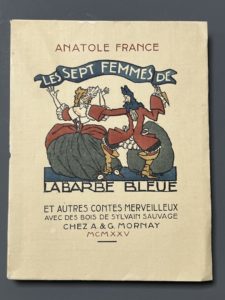 SAUVAGE. FRANCE (Anatole). Les sept femmes de la Barbe Bleue et autres contes merveilleux. Paris, Mornay, 1925. In-8, broché. Edition illustrée de nombreux bois gravés de Sylvain Sauvage, certains en couleurs. Exemplaire n° 386 sur Rives.