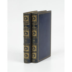 CREBILLON Fils]. Le Sopha, conte moral. A Pékin, chez l'Imprimeur de l'Empereur, 1749. 2 vol. in-12, maroquin bleu, triple filet doré, dos à nerfs orné, roulette int., tr. dorées (Berger-Levrault et Cie). Coghen 266. Nouvelle...