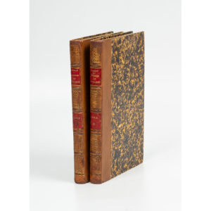 (Rel. du XIXe). Édition originale rare. Ex-libris manuscrit Lutertre sur les titres (nom effacé au tome I). Dos abîmés, restaurés. Tome I, mouillures in fine. Pâles rousseurs.