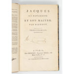 DIDEROT (Denis). Jacques Le Fataliste et son maître. Paris, Buisson, an V (1797). 2 vol. in-8, faux-titre, titre, xxii pp., pp. 23-286 ; faux-titre, titre, 320 pp. ; demi-veau fauve, dos à nerfs orné, pièces de titre et de tomaison rouges...