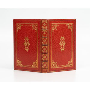GAUTIER (Théophile). Émaux et camées. Paris, Eugène Didier, 1852. In-12, 142 x 90 mm, maroquin rouge, encadrement de filets et palmes dorés, roulette de palmettes à froid, écusson central doré, dos à nerfs orné,...