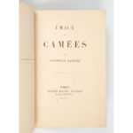 encadrement intérieur, doublure et garde de moire vieux rose, tranches dorées à témoins, non rogné, couv. conservées sans le dos, étui bordé (Semet et Plumelle). Carteret, I, 329. Édition originale du dernier recueil de Gautier, chef d'œuvre de la poésie parnassienne. Bel et rare exemplaire sur grand papier (vélin fort, sans filigrane, dont on ne connaît pas le tirage). Ex-libris Fleury. Rares taches.
