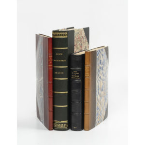 restaurations à la couverture. On joint du même auteur : - Amadis. Poëme. (Œuvre posthume). Paris, E. Plon-Nourrit et Cie, 1887. In-8, demi-chagrin vert foncé avec coins, dos lisse orné de filets dorés (Honnelaître, reliure non signée). Édition originale, ornée d'un portrait-frontispice à l'eau-forte. Rousseurs sur les tranches. - Adélaïde. Nouvelle inédite. Paris, Nouvelle Revue française, 1914. In-8, demi-maroquin bordeaux avec coins, dos à nerfs, tête dorée, non rogné, couv. et dos cons. (Honnelaître, reliure non signée). Édition originale. Un des 990 sur vélin Lafuma Navarre. Un des 354 exemplaires sur vergé pur fil. Dos passé. - Mademoiselle Irnois. Nouvelle inédite. Paris, Nouvelle Revue française, 1920. In-8, demi-maroquin havane avec coins, dos à nerfs, tête dorée, non rogné, couv. et dos cons. (Honnelaître). Édition originale. Un des 990 sur vélin Lafuma Navarre. Dos passé.