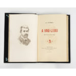 doublure avec encadrement du même box et partie centrale de box bleu nuit, gardes de moire turquoise, couv. et dos conservés, tranches dorées à témoins, non rogné, étui bordé (Françoise Lévy-Bauer). Édition originale, ornée d'un portrait-frontispice gravé à l'eau-forte par Amédée Lynen. Exemplaire sur vergé de hollande, habillé d'une délicate reliure évoquant des reflets d'eau.