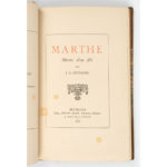 HUYSMANS (Joris-Karl). Marthe, histoire d'une jeune fille. Bruxelles, Jean Gay, 1876. In-12, demi-maroquin brun avec coins, dos à nerfs orné, couv. et dos conservés (Stroobants). Édition originale du premier roman de Huysmans, publiée...