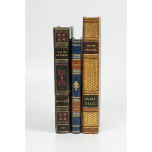 originale. Ex-libris moderne C. Y. M. Suffran, et ex-libris gravé Adrien Lachenal (1885-1962), homme politique suisse. Quelques rousseurs et piqûres. Infimes frottements. Enrichi d'une LETTRE AUTOGRAPHE SIGNÉE de Mérimée à "Monsieur le Comte". Paris, 17 juillet 1868. 4 pp. in-12. Mérimée remercie son correspondant de la part de ses amis de Londres Monsieur Crote et Monsieur Robinson, qui font un travail sur le philosophe, Thomas Hobbes pour les renseignements fournis. Pour faciliter les recherches auxquelles le comte veut bien se livrer, Mérimée lui expose ce que lui a communiqué monsieur Robinson sur un correspondant de Hobbes : François Bonneau, seigneur du Verdus, bordelais qui non seulement traduit plusieurs livres de Hobbes entre 1653 et 1660, mais fut son correspondant entre 1653 et 1674, etc, etc. On joint du même auteur : - La double méprise. Paris, Au masque d'or, Devambez, 1922. In-12, demi-basane bleue, couv. cons. Portrait de l'auteur. Tirage à 1000 ex. sur vélin de Rives, après 30 japon. Petits frottements. - Mosaïque. Lyon, Lardanchet, 1915. In-8, demi-mar. vert sapin avec coins, dos à nerfs orné mosaïqué, couv. et dos cons., tête dorée (Yseux, succ. de Thierry-Simier). Tirage à 1000 ex. numérotés, un des 970 sur vélin de Hollande. Mors fendus, coins et charnières frottés.