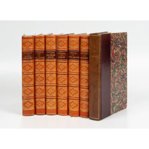 STENDHAL. — 6 vol. in-12, demi-maroquin orange, dos à nerf orné, pièce de titre brune (Rel. ép.). - Lamiel. Paris, Librairie moderne, 1889. Complet du plan. Édition originale publiée par Casimir Stryienski, exemplaire sur...