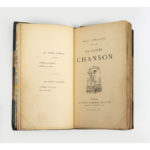 frais de l'auteur qui offrit ce recueil de poèmes à son inspiratrice, Mathilde Mauté (son épouse de 1870 à 1874). Tirage à 590 exemplaires, un des 550 exemplaires sur papier vélin. Quelques taches, mouillure angulaire, couv. salie. Reliure frottée. On joint du même auteur : - Bonheur. Paris, Léon Vanier, 1891. In-12, veau fauve marbré, filet à froid en encadrement, large chiffre doré sur le premier plat, entouré d'une couronné de pampre de vigne, dos à nerfs, tête dorée, couv. et dos cons. (Rel. du XXe s.). Édition originale. Petits manques au titre, au premier plat de la couv. et au dos doublé. - Amour. Paris, Léon Vanier, 1888. In-12, demi-chagrin rouge, dos lisse orné, tête dorée, non rogné (Rel. ép.). Édition originale. Rousseurs marginales. Rel. frottée, traces blanches.