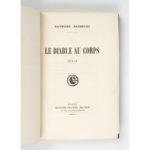 du premier roman de Radiguet ; ce récit fit scandale par son contenu (histoire d'amours adultères sur fond de guerre mondiale) et par le jeune âge de son auteur. Radiguet mourut de la fièvre typhoïde à 20 ans, quelques semaines après cette parution. Tirage à 165 exemplaires. Un des 50 sur hollande. De la bibliothèque Robert Desprechin, avec son ex-libris dessiné par Cocteau en 1959.