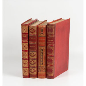 exemplaire. - ERCKMANN-CHATRIAN. Contes et romans populaires. Paris, J. Hetzel, s.d. In-4, demi-chagrin rouge, dos à nerfs orné (Rel. ép.). Impression sur 2 colonnes, ill. in-texte par Jundt, Riou, Benett, Bayard, Gluck. - MALOT. En famille. Paris, Ernest Flammarion, s.d. In-4, demi-chagrin rouge, dos à nerfs orné frotté (Rel. ép.). Ill. de Lanos. Quelques rousseurs. - MALOT. Sans famille. Paris, Hetzel, s.d. In-4, percaline rouge éditeur avec décor or et noir. Ill. de É. Bayard. Quelques rousseurs. En l'état.