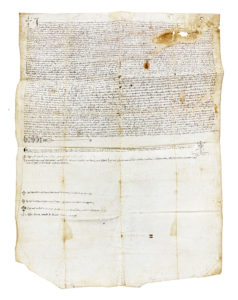 Antica copia notarile della bolla di benefici e privilegi concessi nel 748 da Papa Zaccaria all'abbazia di Montecassino. Datata 30 gennaio 1357.