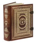 In-folio (mm 385x280). Con splendide miniature, innumerevoli iniziali miniate e bordi riccamente decorati. Legatura editoriale in piena pelle marrone con ricchi decori in oro al dorso a 4 nervi e ai piatti e fermagli araldici in metallo. Presente il volume di Commentario. Mancante il cofanetto editoriale in plexiglass, con piedini in legno al piatto posteriore. Tiratura in 700 esemplari numerati. Timbro di possesso di biblioteca privata. (2) Riproduzione facsimilare a colori del celebre codice custodito presso la Curia Arcivescovile di Chieti, con splendide miniature, innumerevoli iniziali miniate e bordi riccamente decorati.