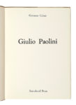 In-8° (mm 215x155). Esemplari a bifoli sciolti, perfettamente conservato. Brossura editoriale in cartoncino avorio stampato in nero al piatto superiore, con il marchio della galleria in argento. SI AGGIUNGE: Celant Germano, Giulio Paolini. New York: Sonnabend Press, 1972. (2) I OPERA: Questo catalogo originale della personale di Giulio Paolini, tenutasi nel gennaio del 1971 presso la Galleria dell'Ariete, rappresenta una preziosa testimonianza documentaria e collezionistica. La mostra Un quadro segna un passaggio fondamentale nella ricerca concettuale di Giulio Paolini, che in quegli anni rifletteva sullo statuto stesso della pittura e dell'opera d'arte come dispositivo mentale, oltre che visivo. La Galleria dell'Arieta, storico spazio milanese, tra i principali centri di diffusione dell'arte contemporanea in Italia negli anni '60-'70, ospitò per prima alcune tra le ricerche più radicali dell'epoca, sostenendo artisti italiani e internazionali. II OPERA: Prima monografia sull'artista pubblicata in occasione della mostra tenutasi alla Galleria Sonnabend di New York nel novembre del 1972.