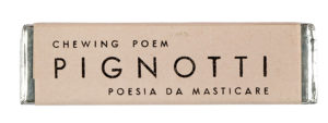 (mm 20x70). Gomma da masticare e incarto tipografico stampato. Minime tracce d'uso. (1) Prima e unica edizione, di quest'opera iconica della Poesia visiva italiana, ideata nel 1972 e distribuita in piccola tiratura nel 1977, in cui l'Artista, durante una performance invita il pubblico a masticare la poesia, trasformando il testo in esperienza sensoriale.