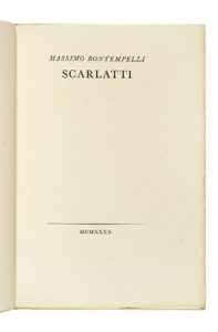 Bontempelli Massimo, Scarlatti. (Al colophon:) Verona: Officina Bodoni di Giovanni Mardersteig, 1940.