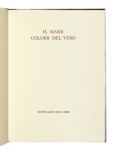 Sciascia Leonardo, Il mare colore del vino. [Milano]: Cento Amici del Libro, [1984]. (Al colophon:) Verona: Officina Bodoni, 1984.