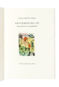 Gadda Carlo Emilio, Un fulmine sul 220. Un'orchestra di 120 professori. [Milano]: Cento Amici del Libro, [1994]. (Al colophon:) Verona: Officina Bodoni, 1994.