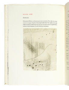 In-folio (mm 353x265). Pagine [62] con 5 acqueforti originali di Tullio Pericoli impresse su carta Alcantara (inclusa quella della brossura) fuori testo, altre 9 illustrazioni impresse su carta Kinugawa Kozu nel testo. Brossura editoriale originale con sovraccoperta rivoltata a tamburo in carta crême chiaro, illustrata all'acquaforte al piatto anteriore e con titolo in rosso al dorso; astuccio in carta avorio vergata. Esemplare ad personam, uno dei 100 esemplari numerati in numeri arabi, firmati dall'Artista al colophon. (1) Parole figurate 164-165.