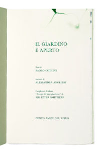 Cottini Paolo, Il giardino è aperto [...]. Incisioni di Alessandra Angelini. Milano: Cento amici del libro, 2015.